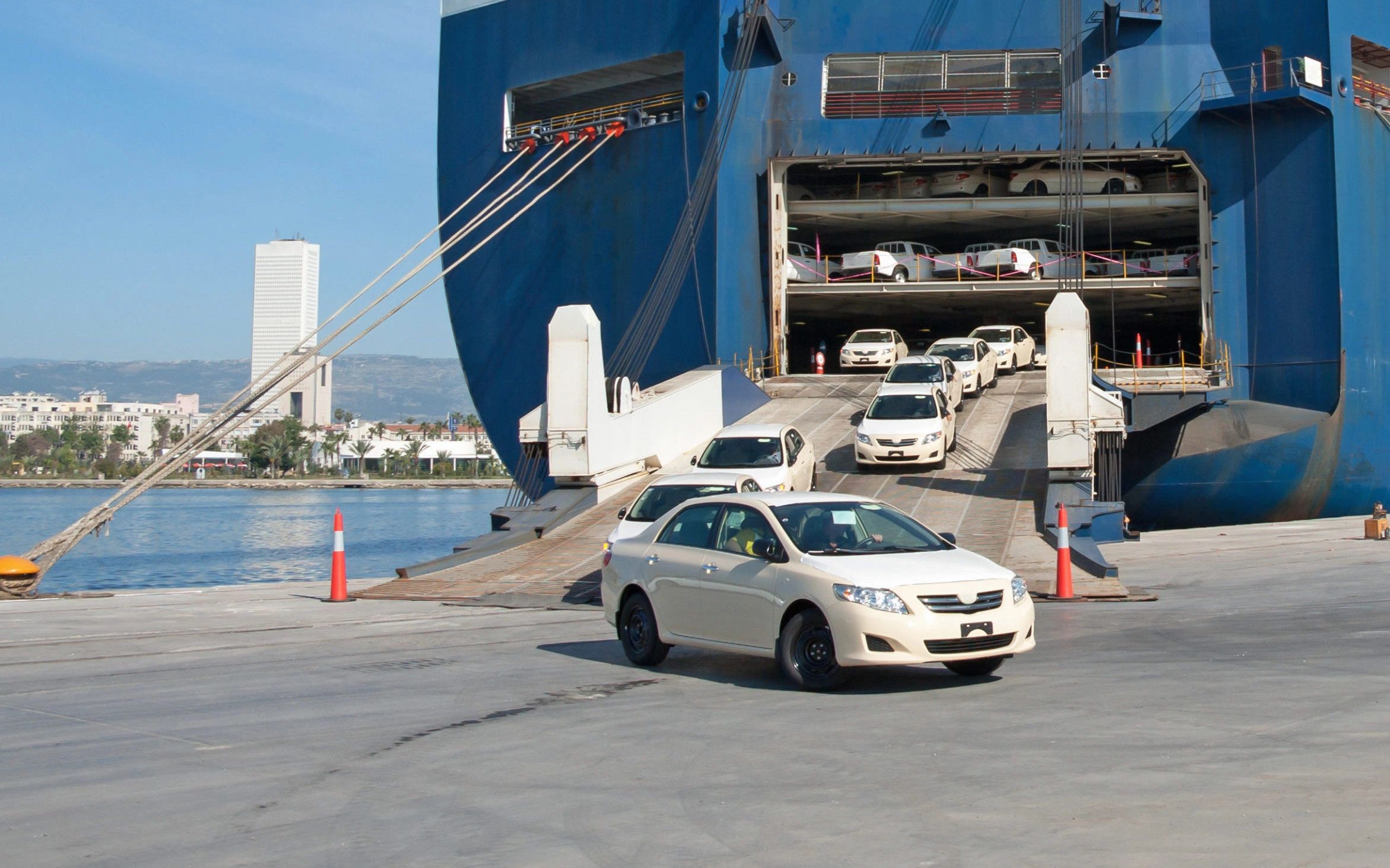 RoRo shipping involves transporting wheeled or truck cargo that is driven on and off a shipping vessel as opposed to being lifted onboard using cranes. It can be cars, trucks, trailers, or any self-propelled units. The vehicles are secured to the deck while shipping with padding to ensure safe transit.